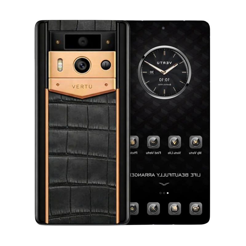 MetaVertu 2 Điểm Vàng Hồng Lưng Da Cá Sấu Đen